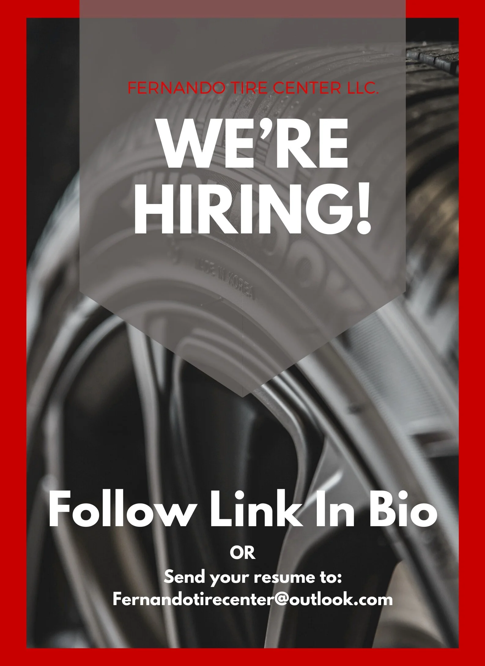 Here at Fernando Tire Center LLC., we are looking for experienced Tire Technicians to join our team!